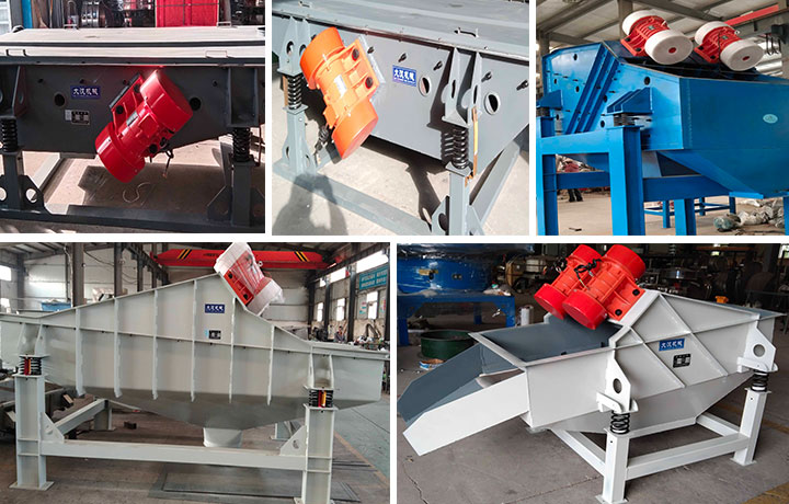 小型直線篩的篩面寬度≤800mm,可以選用 YZU-5-4、YZU-10-4 等型號(hào)的振動(dòng)電機(jī),激振力能達(dá)到 5~10kN,可以篩分如化工粉末、食品顆粒。